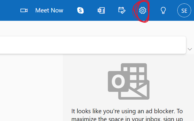 - Verify that you're logged into your workplace email account, and then select the cog in the top right corner of the screen.