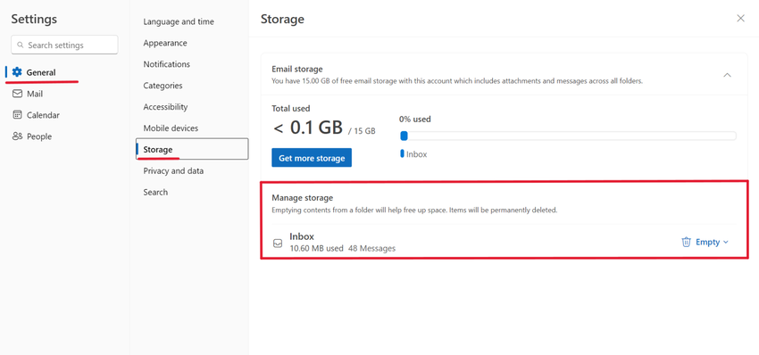 You might receive a message that you are nearing your Outlook storage quota. You can clean up your mailbox by following the steps below.