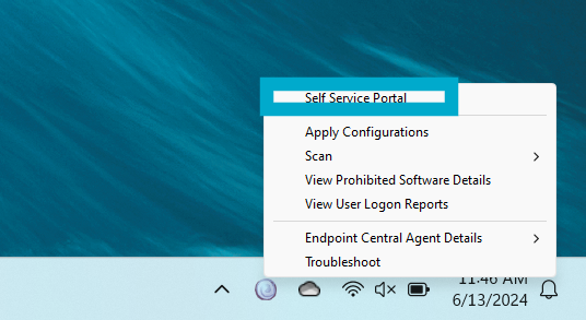 1. Locate the Self Service Portal on your device, it should be in the lower right hand corner of your desktop.
